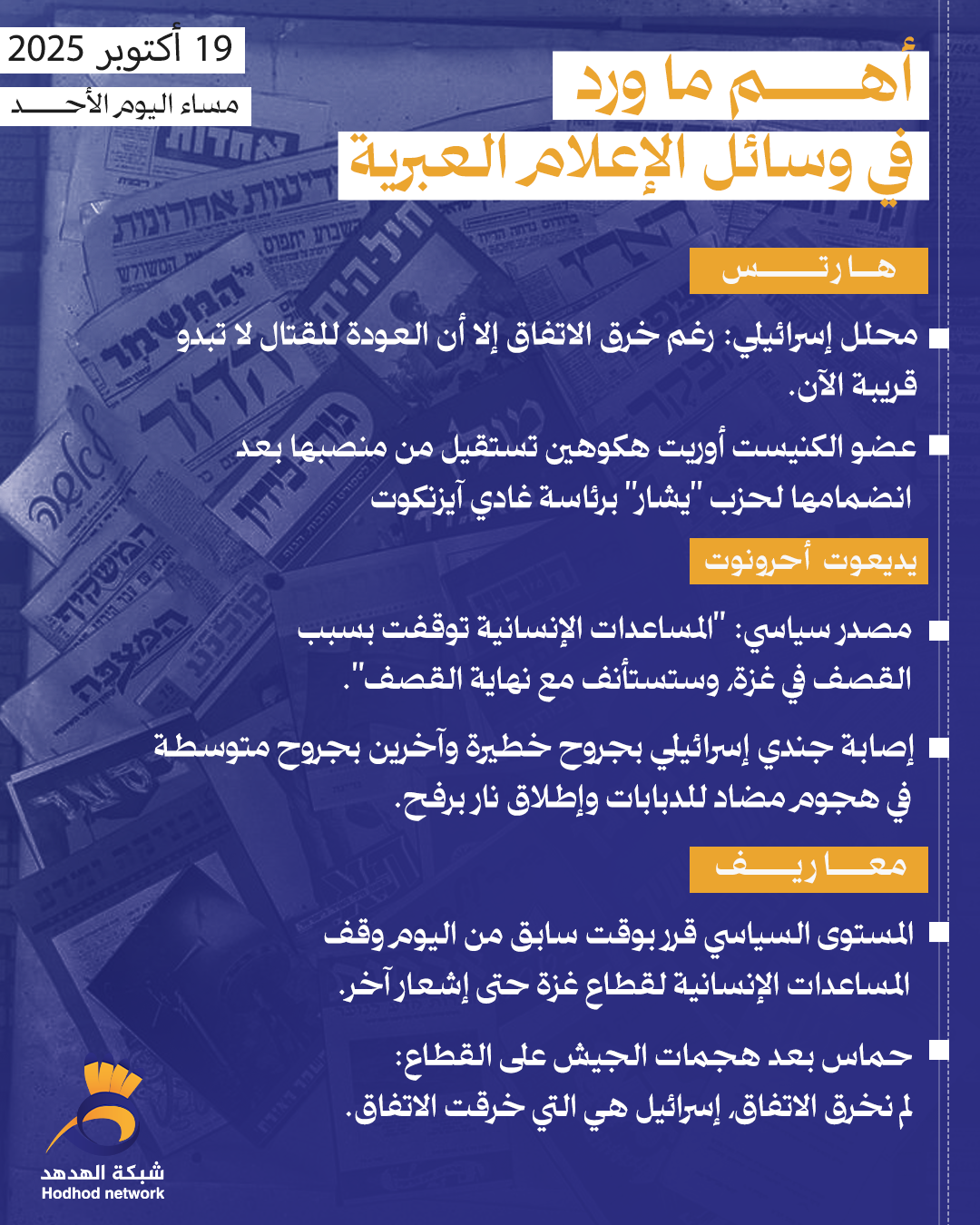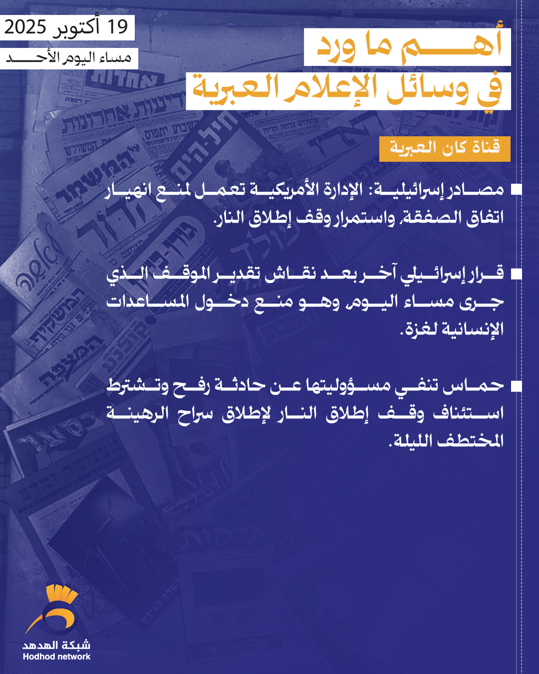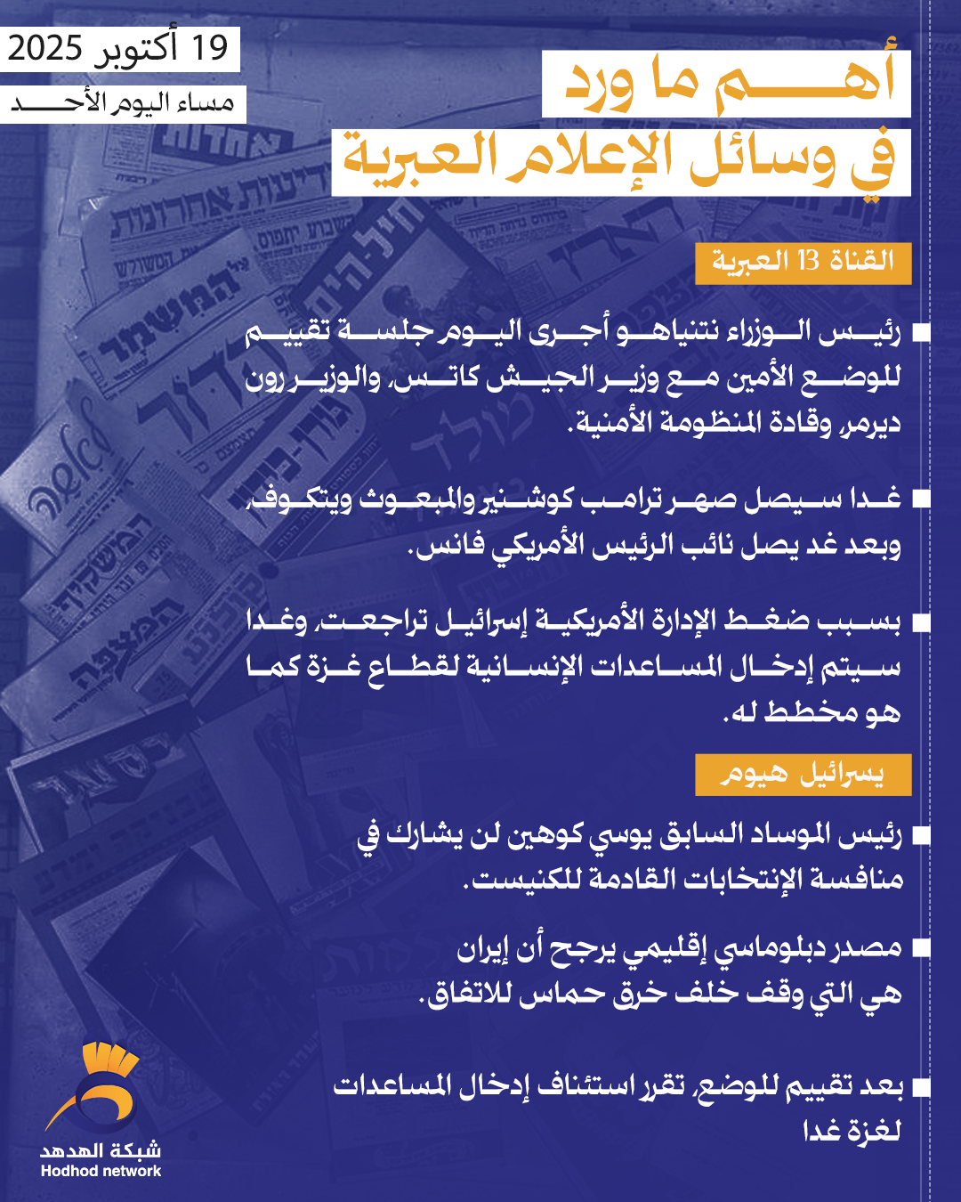 أبرز العناوين بوسائل الإعلام العبرية مساء اليوم الأحد