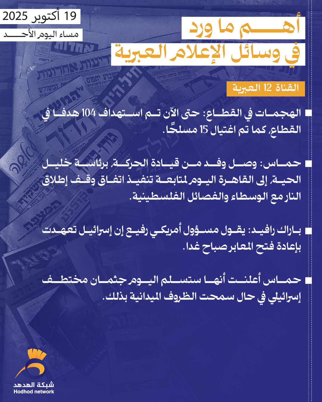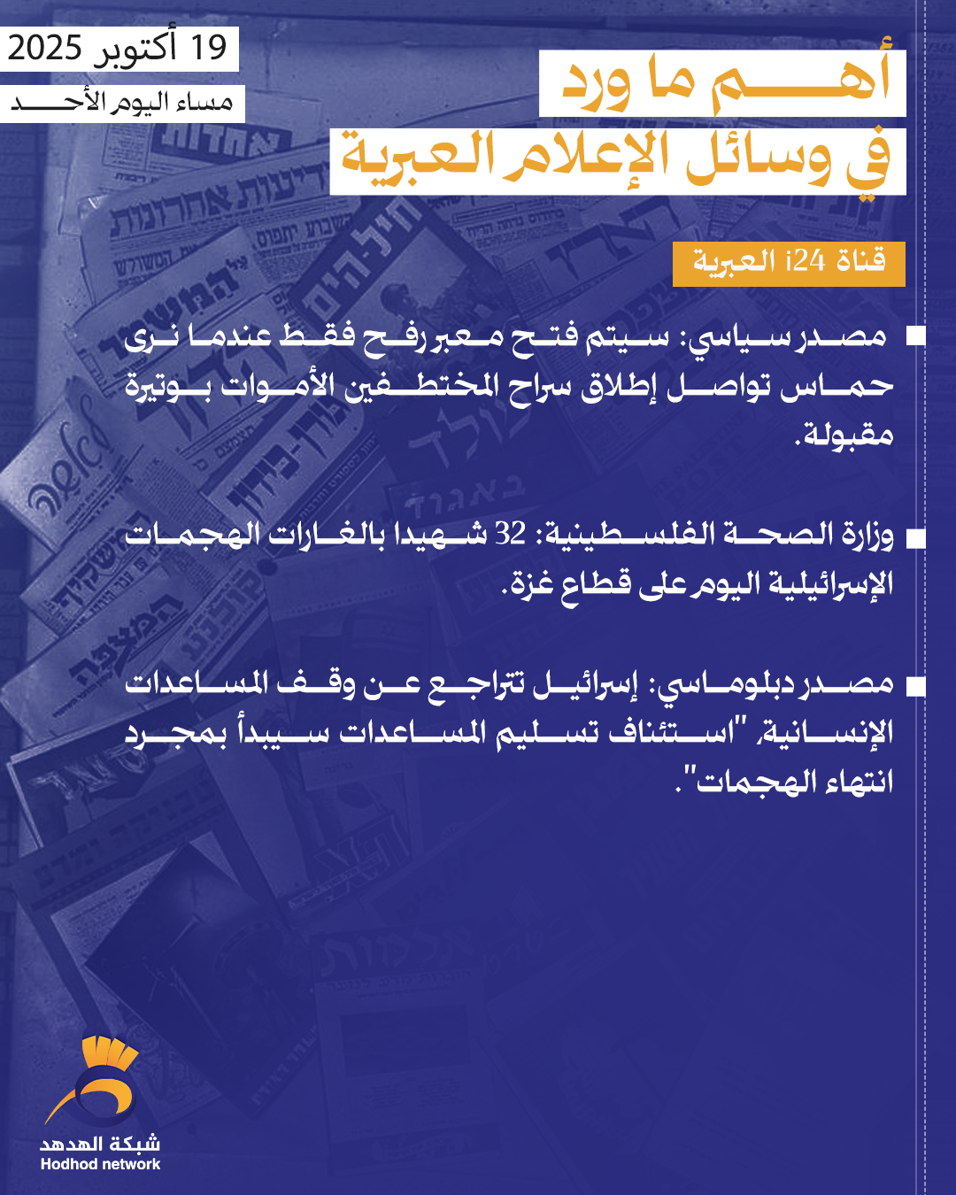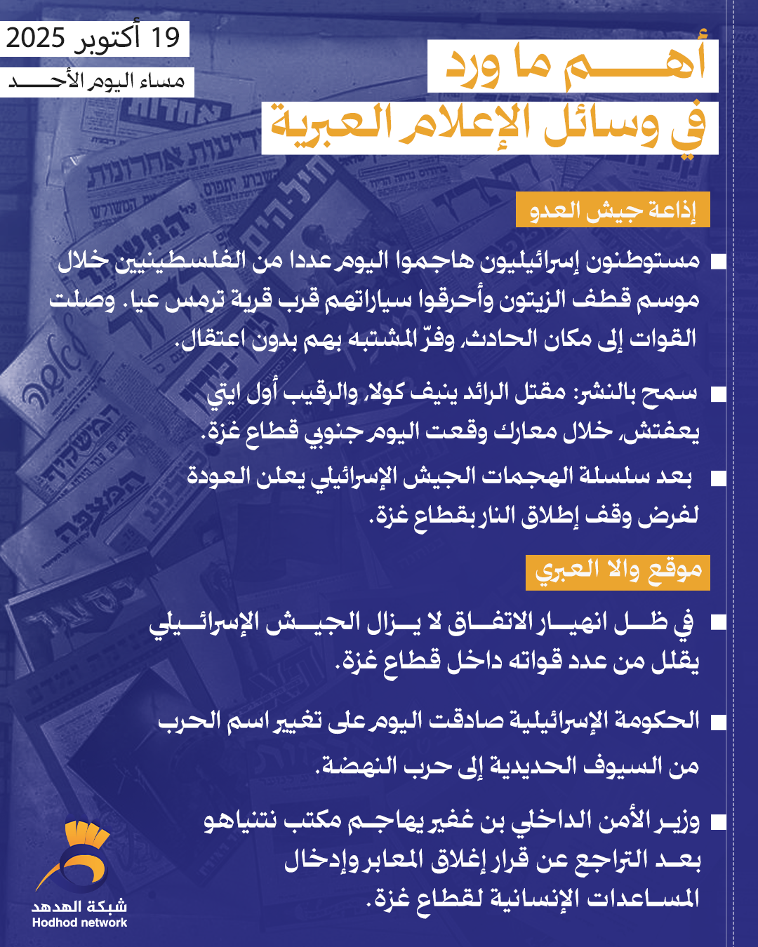 أبرز العناوين بوسائل الإعلام العبرية مساء اليوم الأحد